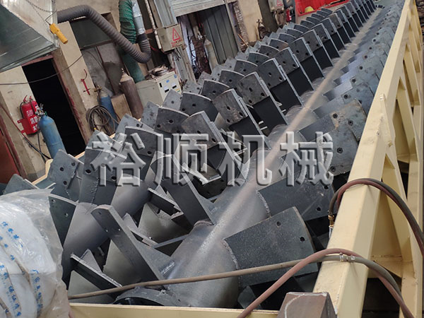 4、螺旋洗石機(jī)的螺旋葉片采用耐磨耐沖擊高鉻鑄鐵制作,采用螺栓固定,易更換。
