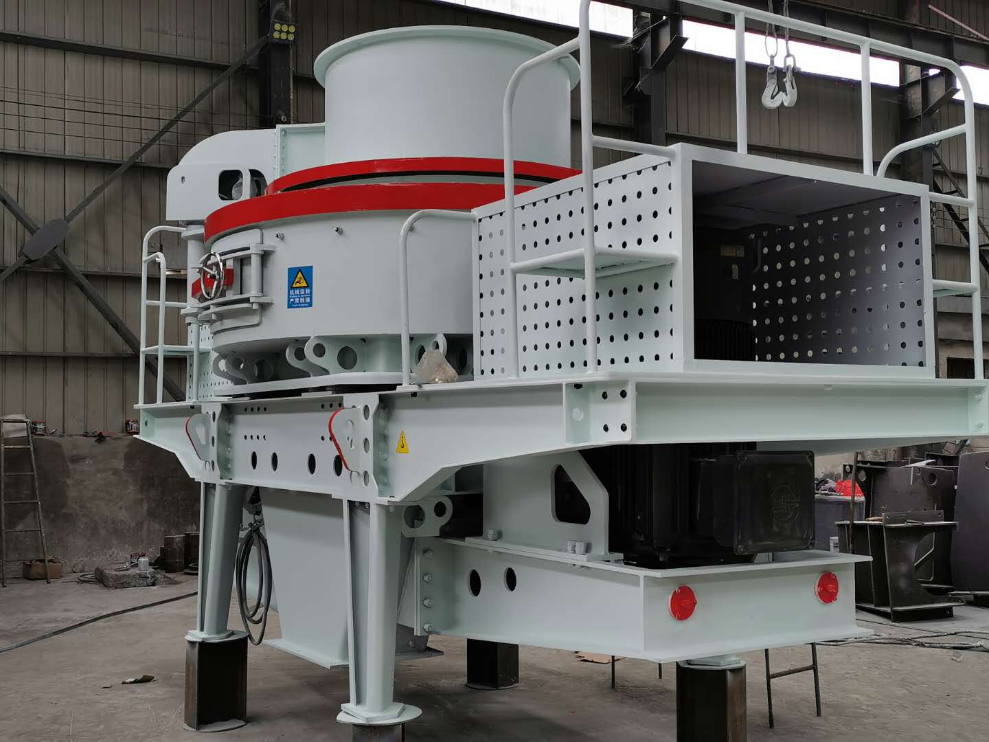安裝時(shí)應(yīng)將沖擊式制沙機(jī)調(diào)平使其主軸與水平面垂直。碎石機(jī)上方應(yīng)設(shè)置起吊設(shè)備,起吊設(shè)備能力按制沙機(jī)重量考慮,在制沙機(jī)上方應(yīng)留有起吊空間,在制沙機(jī)一側(cè)留適當(dāng)空間,以備檢修時(shí)用。